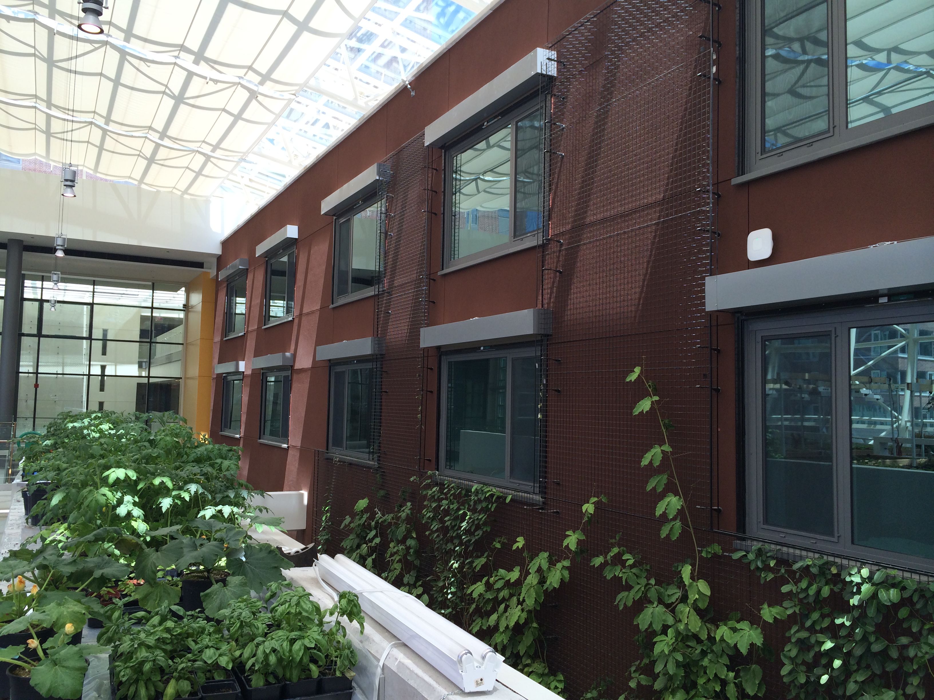 The design challenge arose in the Institute of Environmental Sustainability, a state of the art, LEED certified institute facility that features a residence hall (San Francisco Hall) looking out onto the research facility - a huge atrium and aquaponics greenhouse.