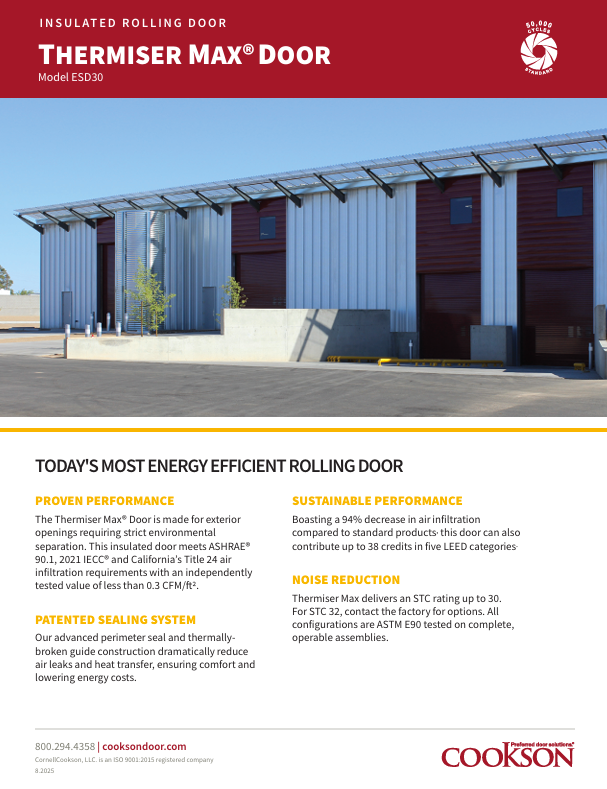 Our Thermiser Max® Insulated Rolling Door is the most energy-efficient insulated rolling door available today, with the certifications to prove it. IECC, ASHRAE, LEED – this door has it all while decreasing air infiltration by 94% versus standard products. And, because we care about the environment as much as you do, the door can help you achieve up to 38 points in five LEED certification credit categories.