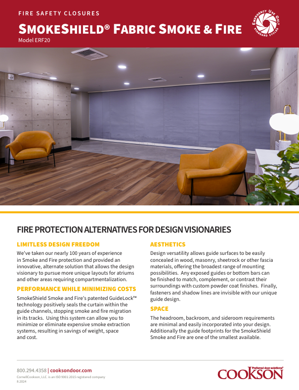 SmokeShield® Fabric Smoke and Fire is a first of its kind fire protective curtain. It pulls double duty for use in both new construction and retrofit projects, offering high quality life safety protection with a UL10D three-hour fire protection rating and a UL1784 smoke and air infiltration listing.